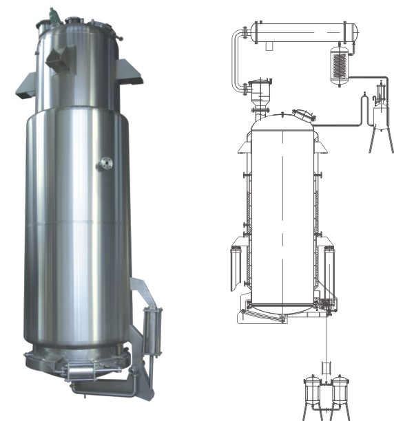 本設(shè)備可用于中藥、食品、化工行業(yè)的常壓、微壓、水煎、溫浸、熱回流、強(qiáng)制循環(huán)、滲漉、芳香油提取及有機(jī)溶煤的回收等多種工藝操作。大小錐型提取罐最突出的特點(diǎn)是出渣非常方便,加熱效果好。罐體配備CIP清洗自動旋轉(zhuǎn)噴洗球,測溫孔、防爆視孔燈、視鏡、快開式投料口等,確保操作簡便,符合GMP標(biāo)準(zhǔn)。設(shè)備內(nèi)筒體材質(zhì)為進(jìn)口SUS304,夾套采用全封閉硅酸鋁毯保溫,外筒體貼SUS304亞光薄鋼板飾面。設(shè)備成套供應(yīng)包括:除沫器、冷凝器、冷卻器、油水分離器、過濾器、氣缸控制臺等附件。